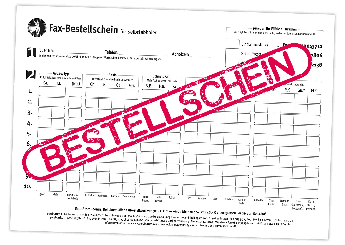 Bitte beachtet bei der Bestellung, dass die richtige Filiale zur Abholung angekreuzt und alles vollständig ausgefüllt ist.